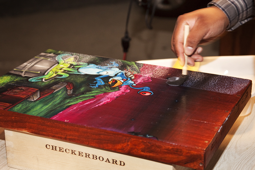 From LA to Australia Date: October 27, 2011Author: vgmlphotography Category: Uncategorized Post navigation ← One Hour, Two Fish Dia de los Muertos Show → Artists Putting the finishing touches on a piece that will been shown in a group show in Australia. Share this: Click to share on Facebook (Opens in new window) Facebook Click to email a link to a friend (Opens in new window) Email Like Loading... Related